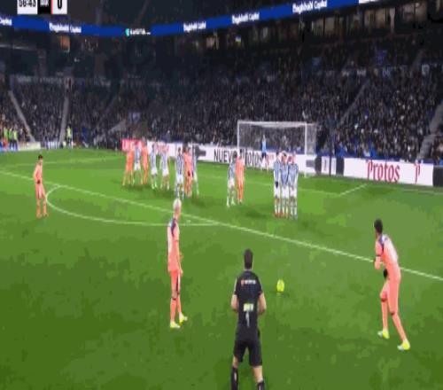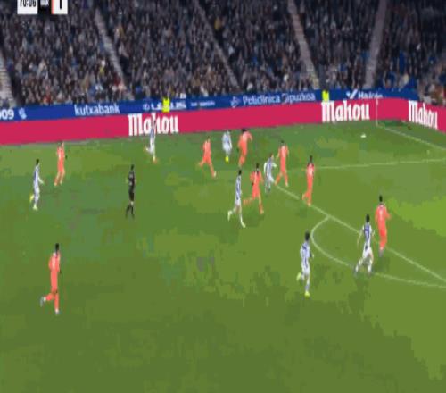 第32分钟,精彩绝伦,奥亚萨瓦尔凌空抽射破门,巴萨0-1