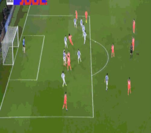 第9分钟,费尔明破门,但是因奥尔莫先前抢断犯规被判无效