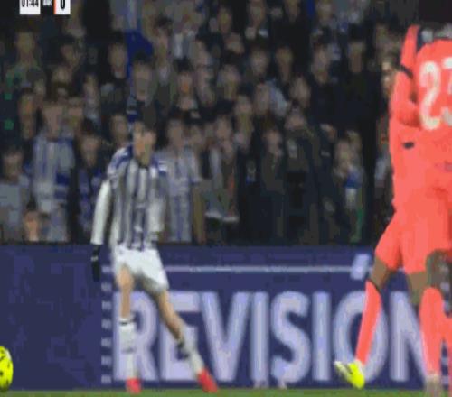 第89分钟,索莱尔飞铲佩德里,主裁观看视频回放直红将前者罚下