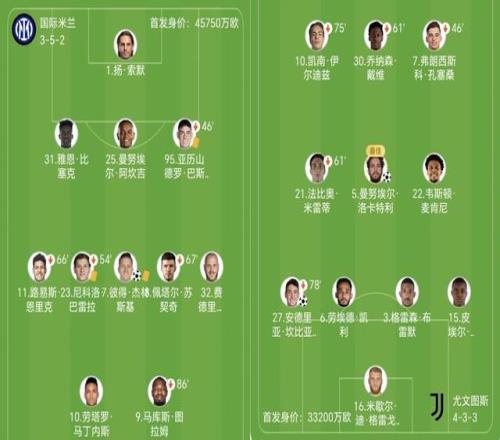 下半场两队易边再战,人数占优的国米持续施压,尤文则坚定顽强防守。