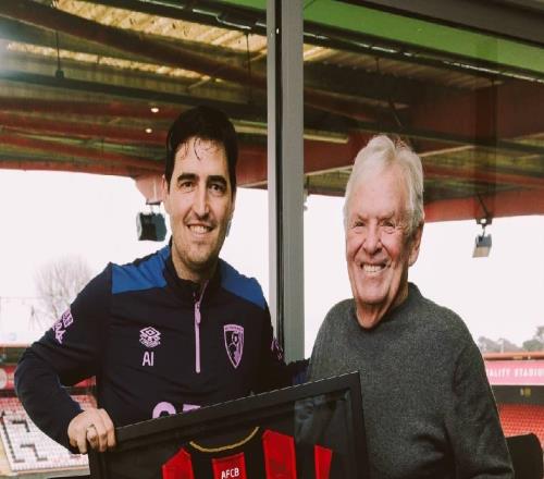执教100场英超里程碑,伯恩茅斯主席为伊劳拉送上纪念球衣 -